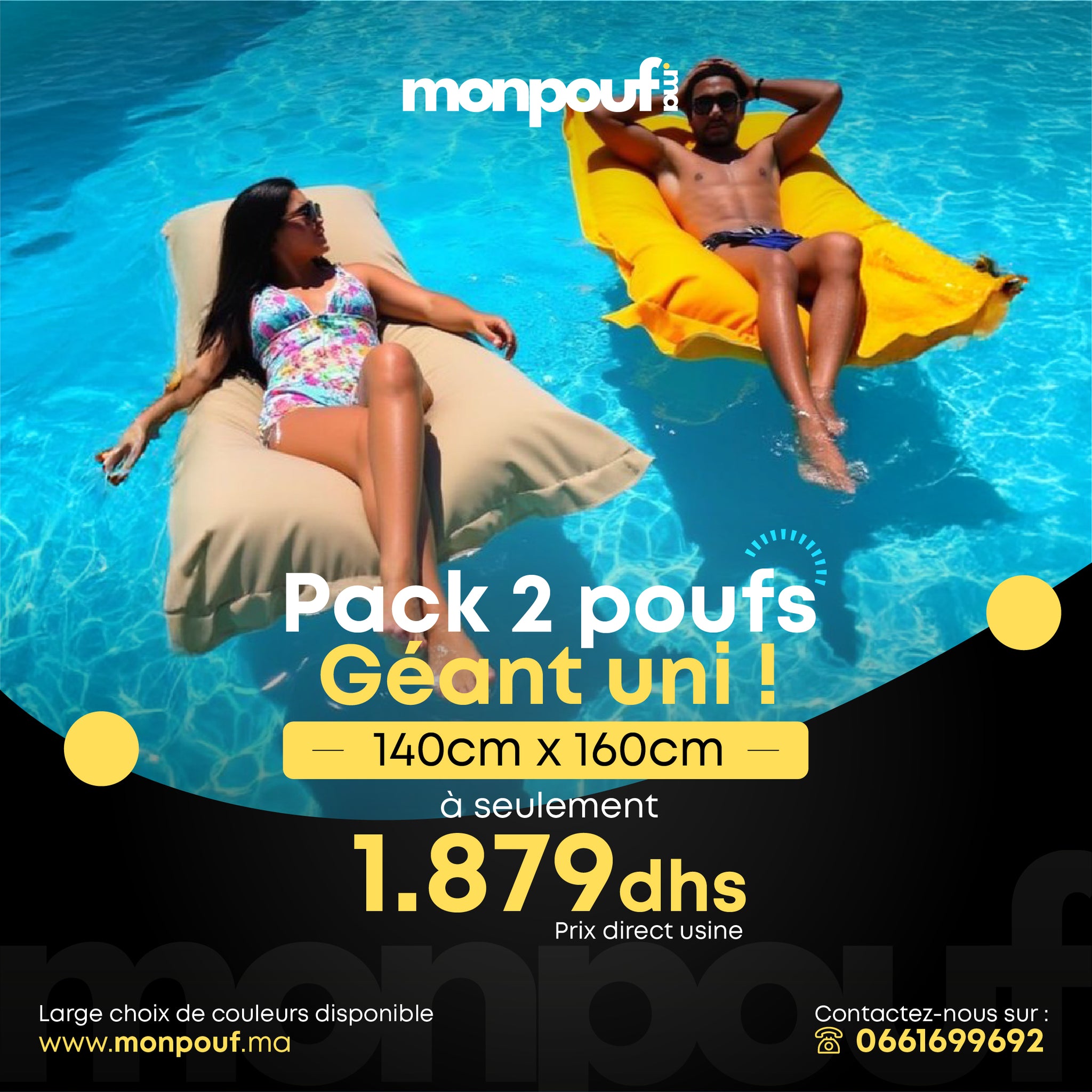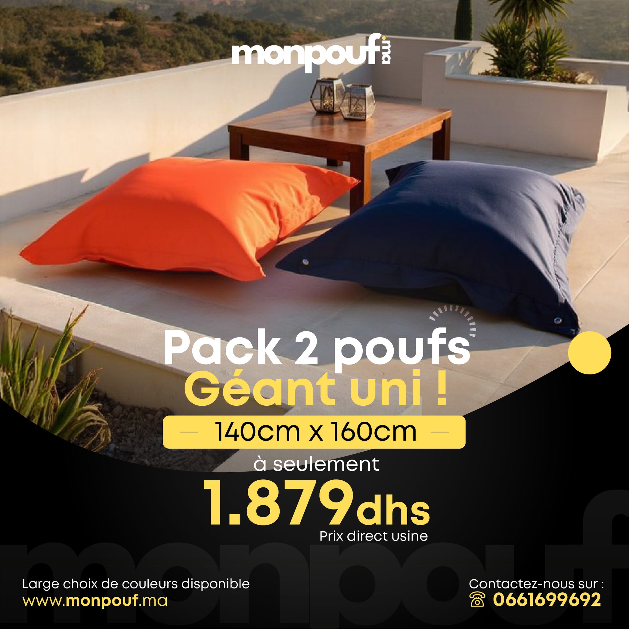 Nos poufs géants sont remplis de billes de polystyrène et recouverts d’un tissu imperméable, ce qui les rend parfaits pour une utilisation aussi bien à l’intérieur (chambre, salon, salle de jeux) qu’à l’extérieur, notamment au bord de la piscine ou dans un jardin.