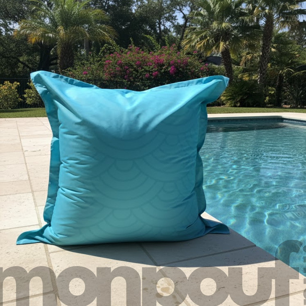 Lorsque le pouf est utilisé dans une piscine, il est possible qu’une petite quantité d’eau s’infiltre par les coutures. Pas d’inquiétude ! Il suffit de laisser le pouf sécher à l’ombre, le temps que l’eau s’évapore naturellement.