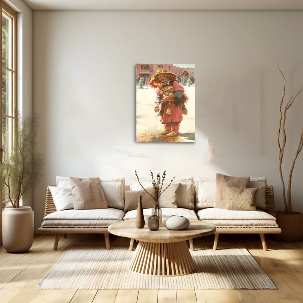 ✨ Couleurs et Détails Riches : Les nuances chaudes et les détails minutieux, du costume traditionnel aux accessoires en cuivre, évoquent une ambiance vivante et pleine de caractère.