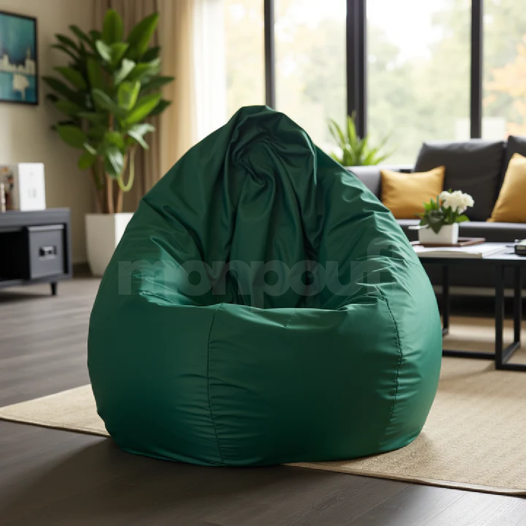 Grâce à son tissu agréable et souple ainsi qu’au garnissage en micro billes de polystyrène, le pouf Uni Vert FONCE s’adapte directement à votre morphologie vous offrant un confort ultime.