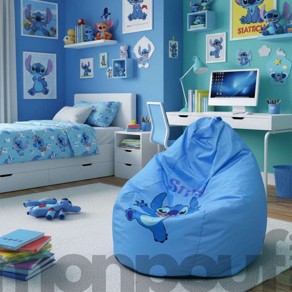 Apportez une touche de fantaisie et de confort à la chambre ou au coin détente de votre enfant avec notre pouf "Stitch" bleu. Facile à déplacer grâce à sa légèreté et sa poignée discrète, ce pouf original trouvera sa place partout : chambre, salon, terrasse ou jardin.
